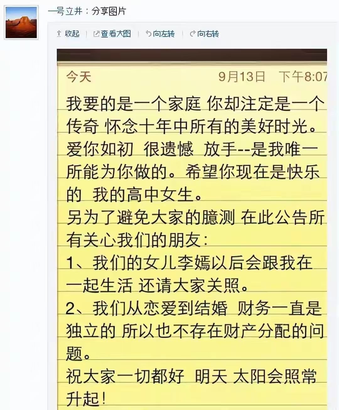 2013年9月13日,李亚鹏和王菲的离婚声明刷爆全网。